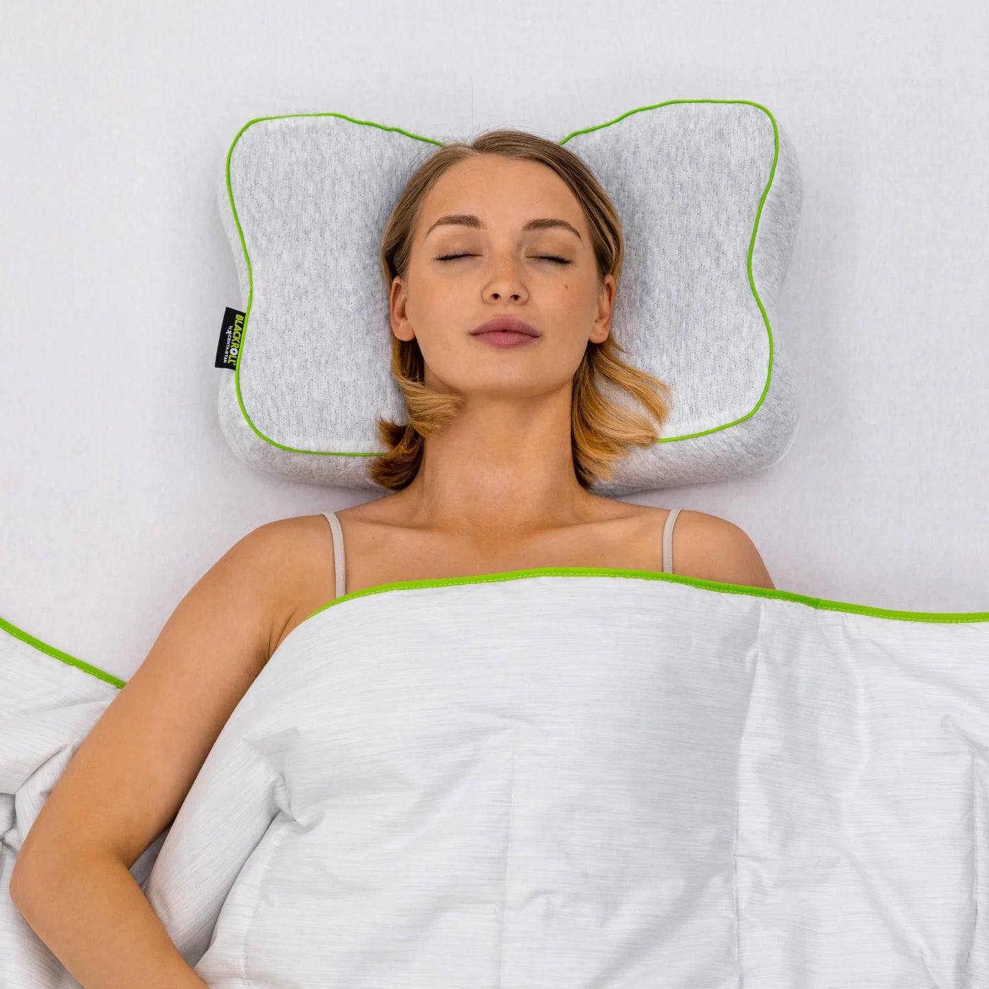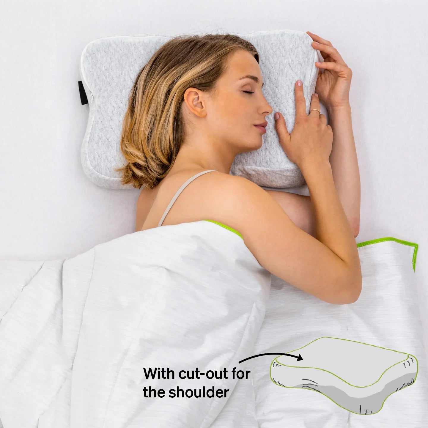 - Ergonomic shape supports head and neck for a relaxed sleep